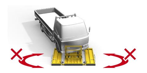 これまでの大型車用車両停止装置では、斜めからの侵入車両によっては偏心力が発生し、底板が変形(浮き上がり)して進行エネルギーを路面方向の制動仕事に変換しにくい状況が発生していました。「規制の横綱」は底板面積を大きくすることにより、斜めからの進入車両にも通常の侵入と同様な停止機能を有する車両停止装置となっています。