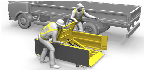 現場設置においては、車載クレーン等で積み下ろし等を行い、現場内の移動は車輪が付いているため簡単に動かせる構造となっています。